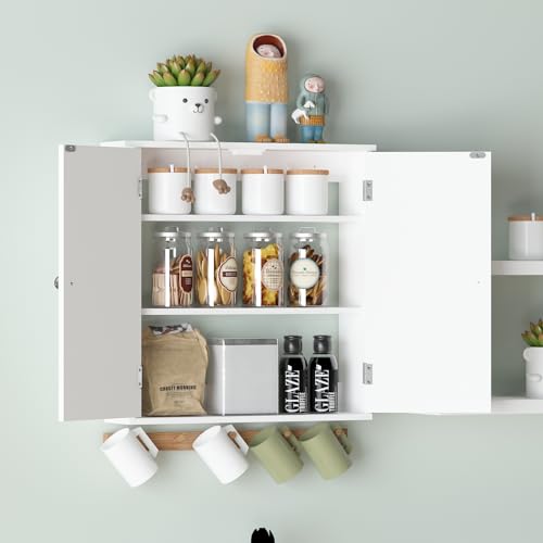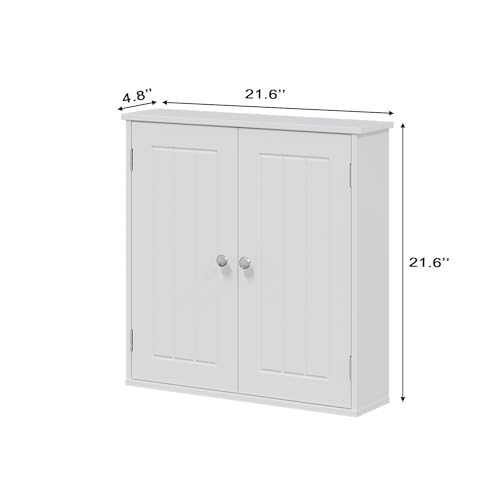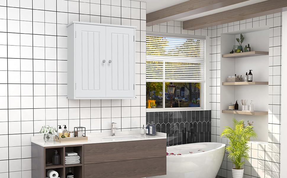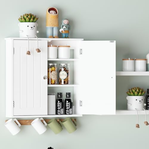 خزانة حائط للحمام فوق المرحاض من يجاملايف، خزانة ادوية صغيرة للحمام وغرفة الغسيل والمطبخ، خزانة تخزين موفرة للمساحة مع رفين قابلين للتعديل، خشب مُصنع، أبيض