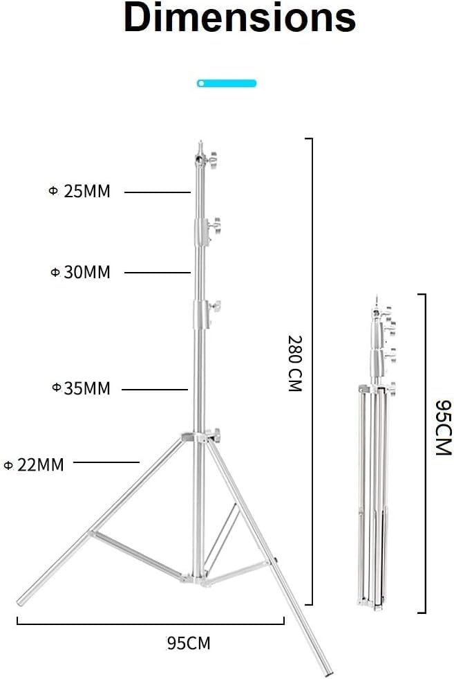 حامل إضاءة من الفولاذ المقاوم للصدأ بطول 2.8 م مزود بمحول عالمي 6.35 إلى 9.5 ملم