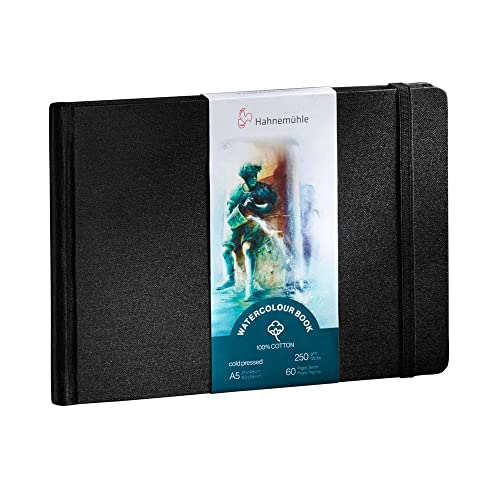 هانيموهلي كتاب الوان مائية 100% قطن، 250 غرام/متر مربع، غير لامع، لاصق على السطح، 30 ورقة/60 صفحة، كتاب الوان مائية (A5 - تنسيق منظر طبيعي)