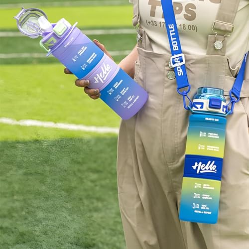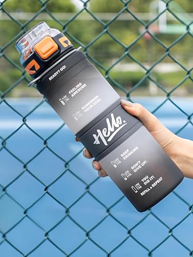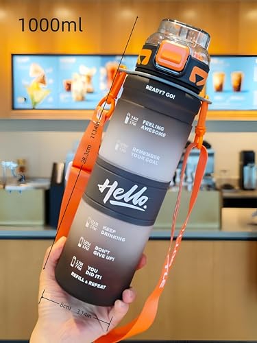 - تم تصميم زجاجة المياه التحفيزية هذه بسعة لتر واحد لتحافظ على رطوبتك طوال اليوم، وتتميز بعلامات زمنية تشجعك على الشرب على فترات منتظمة. إنها مثالية للبقاء على المسار الصحيح لتحقيق أهداف الترطيب الخاصة بك، سواء كنت في المكتب أو في الهواء الطلق أو تذهب إلى صالة الألعاب الرياضية.