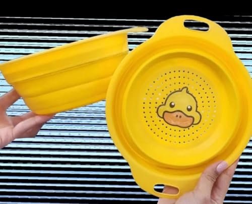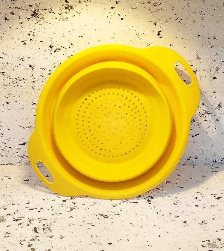 جيني مصفاة سيليكون قابلة للطي، مصفاة مطبخ دائرية مع مقابض، لون اصفر