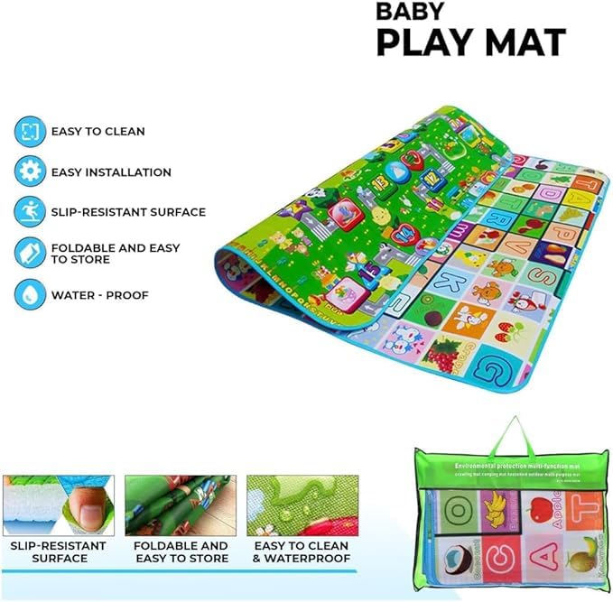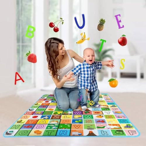 سجادة لعب للأطفال - لوحة تعليمية على الوجهين - مقاس كبير 2 م × 1.80 م - مقاومة للماء للمنزل والخارج من نيكست ستور