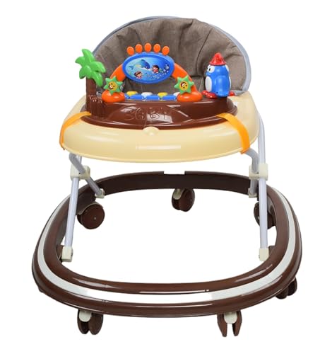 مشايه بلاستيك مع صوت و إضاءة على شكل بيانو وبطريق للأطفال - بني