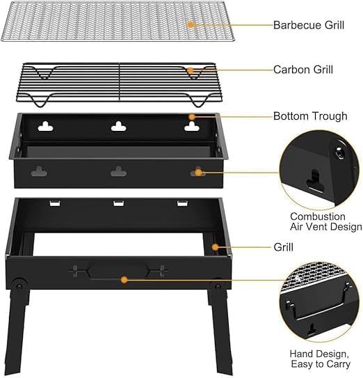 - متعددة الأغراض: شواية صغيرة الحجم بأبعاد غير مطوية 35 × 27× 20 سم، مناسبة للشواء في الهواء الطلق من 3 إلى 5 أشخاص، مناسبة جدًا لحفلات الشواء في الهواء الطلق والنزهات والتخييم والحفلات العائلية والشواطئ ورحلات السيارات. يمكنك طهي مجموعة متنوعة من اللحوم والمأكولات البحرية والخضروات، مما يسمح لك بالاستمتاع بنكهات آمنة وصحية حتى في الهواء الطلق.