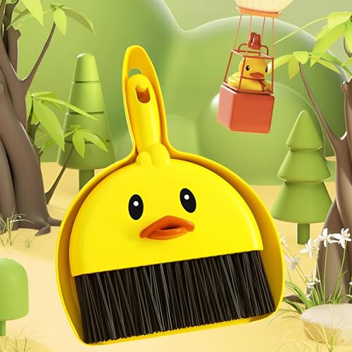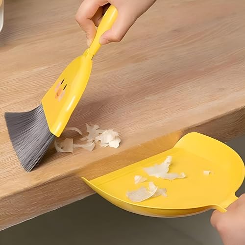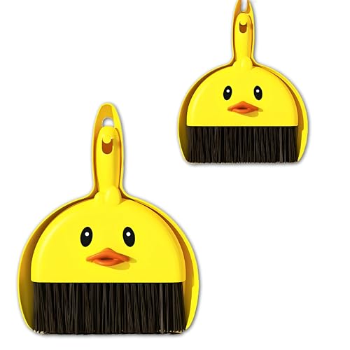 ادوات تنظيف - فرشاة ومجارف صغيرة محمولة مثالية للكيبورد والمكتب والمطبخ والسيارات وتنظيف نفايات الحيوانات الاليفة مع شعيرات من الالياف الناعمة ونمط كرتوني ممتع (قطعتين)