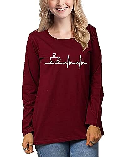 تيشرت مطبوع بكلمة «COFFE» من برنت اونلاين، للنساء، قطن، ياقة ضيقة