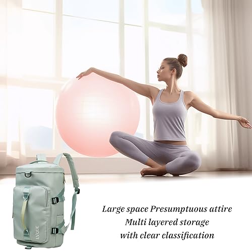 شنطة رياضية لصالة الالعاب الرياضية يد لليوجا لفصل الرطب والجاف مع جيب للاحذية للرياضة واللياقة البدنية والسفر ظهر كبيرة السعة للسفر للرجال والنساء اخضر قماش أكسفورد