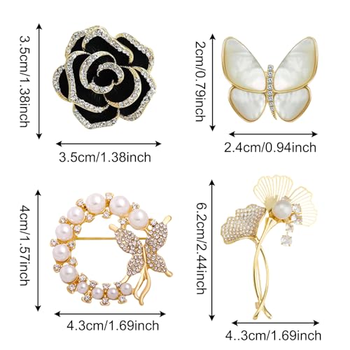 4 قطع بروش من بسيتسس، دبوس بروش كلاسيكي انيق على شكل زهور، بروش عصري، بروش لؤلؤي لامع، بروش للملابس والشنط والجاكيت، اكسسوارات شنطة الظهر، عالمي، صناعي