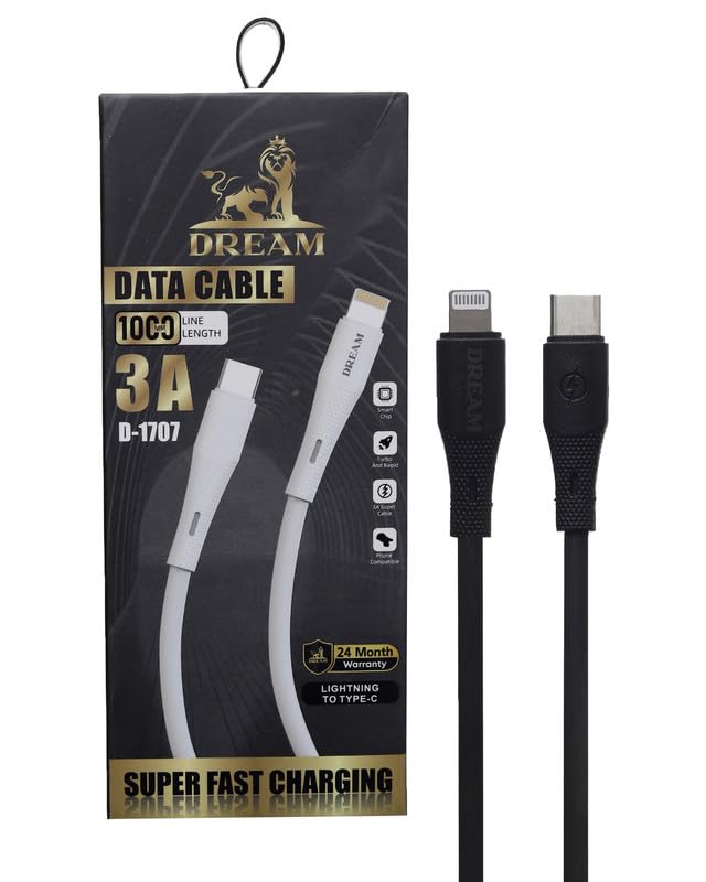 دريم كابل بيانات للشحن السريع من لايتنينج الى نوع سي 3 امبير، طول 1 متر، موديل D-1707 - اسود
