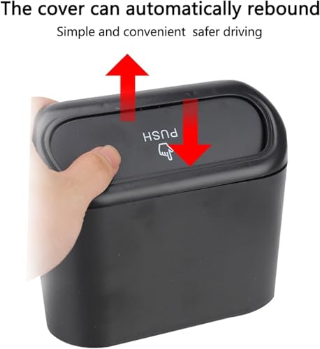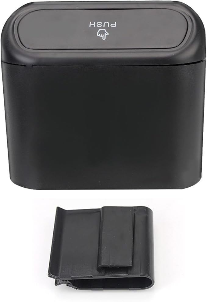 سلة مهملات للسيارة بغطاء، حاوية معلقة قابلة للطي خفيفة الوزن، لون أسود