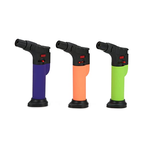 ولاعة سجائر قابلة لاعادة الملء بشعلة نفاثة مفردة مع قفل امان من فويلا، شعلة قابلة للتعديل ومقاومة للرياح بالوان نيون، عبوة من 3 قطع