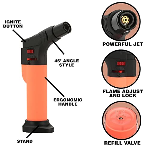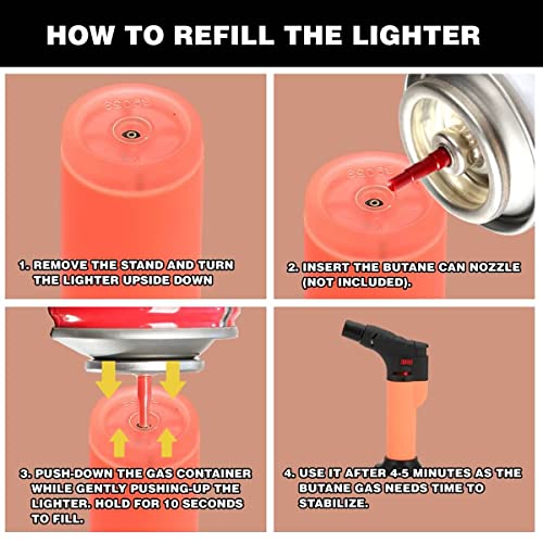 - ولاعة بتصميم مسدس: الأبعاد: 4.7 × 2.7 × 0.9 بوصة. الوزن: 1.7 اونصة لكل عبوة. ولاعة لهب نفاث بشعلة واحدة. مصنوعة من البلاستيك. ولاعة مقاومة للرياح. قابلة لإعادة الملء بالبوتان. مفتاح لهب قابل للتعديل. زر الإشعال. ولاعة لهب للجيب.