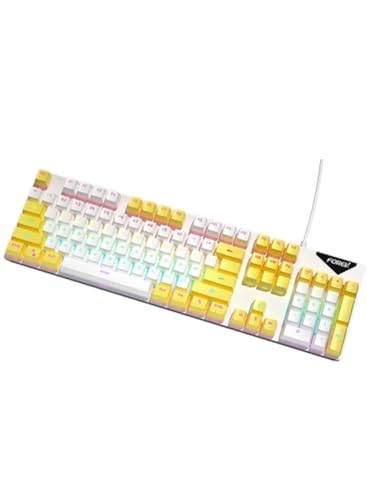 كيبورد ألعاب ميكانيكي سلكي متعدد الألوان، لوح مفاتيح للألعاب، أبيض وأصفر، FVQ302