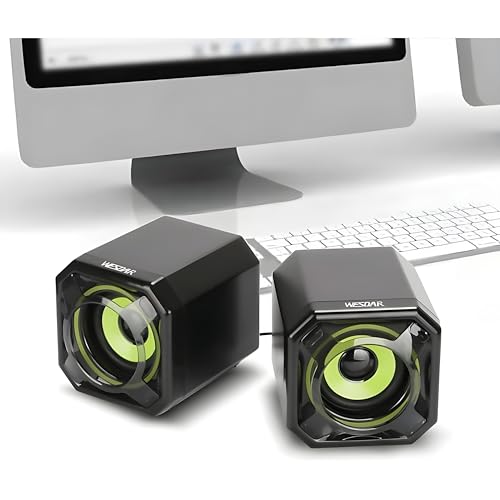 سماعات ومكبرات صوت للكمبيوتر بصوت ستيريو مزدوج CS2 من ويسدار، تصميم أنيق مع إضاءة ملونة، كابل USB بطول 1.35 متر