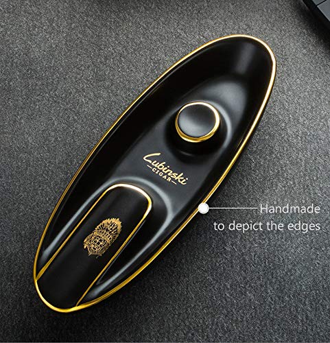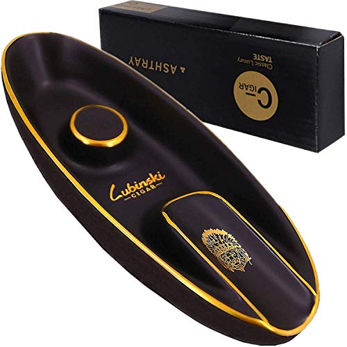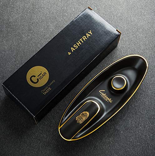 منفضة سجائر صينية من السيراميك من LUBINSKI ، حامل سيجار على شكل عصري منفضة سجائر بتصميم عتيق لتزيين المكاتب المنزلية في الفناء الخارجي ، هدية للعطلات (أسود) قطعة واحدة