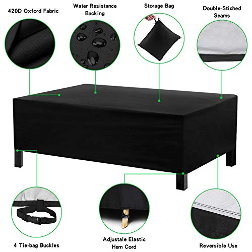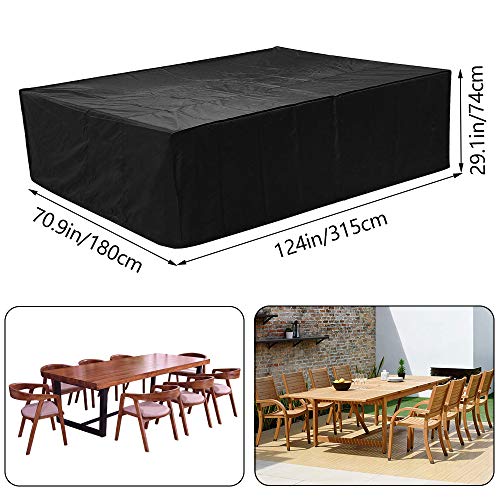 أغطية أثاث خارجية مقاومة للماء، أغطية أثاث الفناء 420D بوليستر اوكسفورد، غطاء لطاولة وكرسي فناء بسعة 12-14 مقعد، مقاومة للرياح والأشعة فوق البنفسجية من Cyanbamboo، الحجم الكبير L 315×180×74 سم، أسود