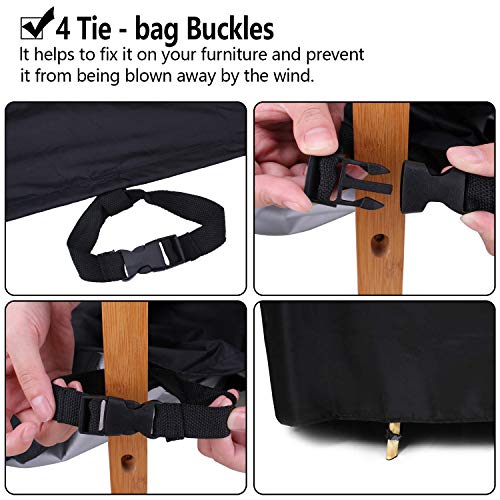 - 【مقاومة للماء ومتينة】أغطية الأثاث مصنوعة من بوليستر اوكسفورد 420D، مقاومة للماء ومتينة للغاية، ليس من السهل تمزيقها. عند الخروج للسفر، لا تقلق من تعرض أثاث الشرفة للبلل بسبب المطر والثلج، تحمي أثاث الفناء الخاص بك من الغبار وورث الطيور.