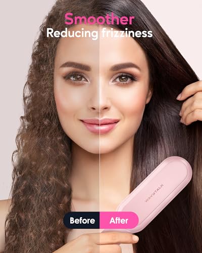 فرشاة فرد الشعر سويب سليك بجهد كهربائي مزدوج، أداة تمليس أيونية مع 6 مستويات للحرارة ومشط فرد سيراميك مضاد للحروق بتسخين سريع للاستخدام المنزلي وصالونات التجميل من ويفي توك، وردي