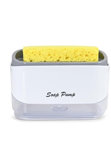 موزع صابون صحون عصري 2 في 1 وحامل اسفنجة من مواد عالية الجودة - منظم ادوات غسيل الصحون لتوفير المساحة وتنسيق المطبخ باحترافية