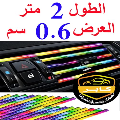 حواف لفتحات تهوية تكييف الهواء في السيارة من الكروم وبلاستيك بي في سي، شريط تزيين للحواف الداخلية للسيارة لجميع فتحات التهوية المستقيمة، إكسسوارات لامعة- طول 2 متر - متعدد الالوان- من كابر مصر 2020