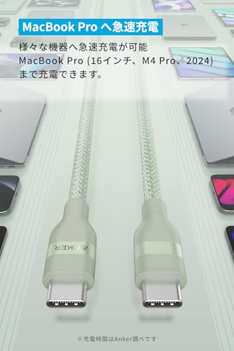 كابل من أنكر بطول 1.8 متر نوع USB-C إلى USB-C متوافق مع ماك بوك برو وآيفون 15 وجالاكسي وآيباد برو وآيباد اير وماك بوك اير