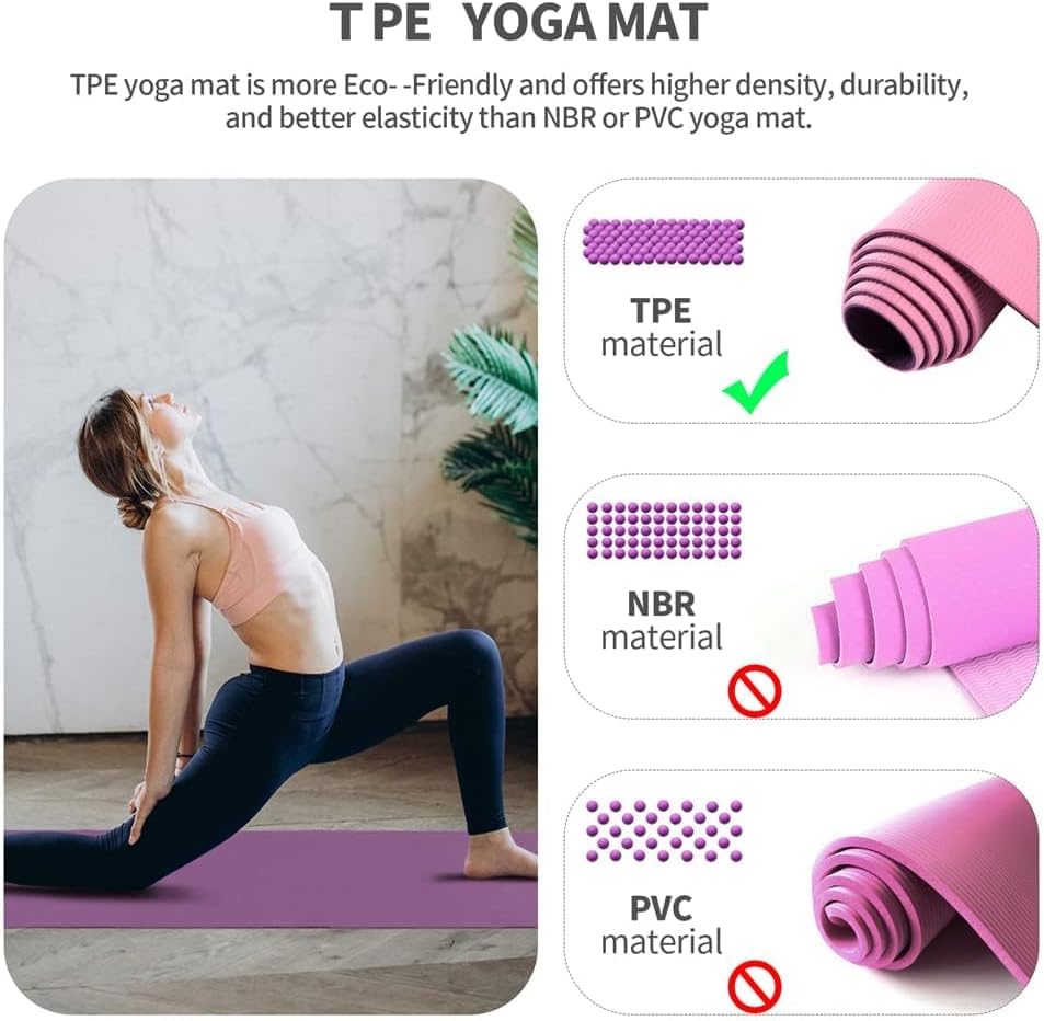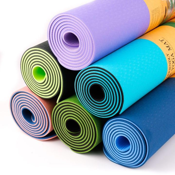 سجادة لتمارين اليوجا مزدوجة الجوانب من مطاط حراري مرن مانعة للانزلاق بسمك 6 ملم، متعددة الألوان