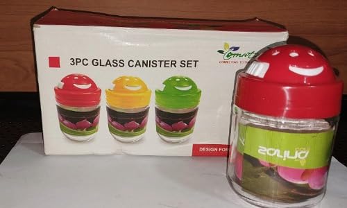 برطمانات توابل زجاجية بغطاء بلاستيكي، 3 قطع متعدد الألوان
