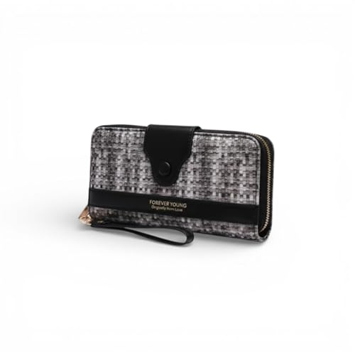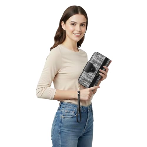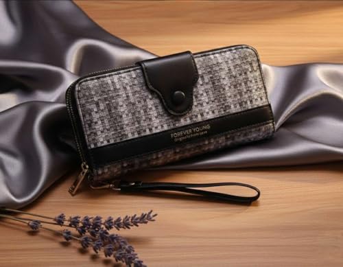 محفظة بسحاب مزدوج للنساء من كاناز - حقيبة يد كبيرة على شكل كتاب مع حزام معصم، محفظة منظمة متعددة البطاقات، محفظة انيقة طويلة بسحاب للنساء، ليتشي بوك (اسود)