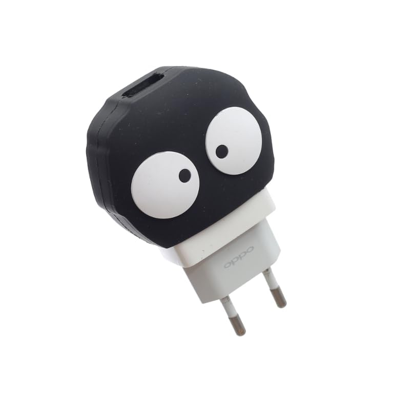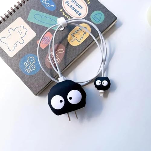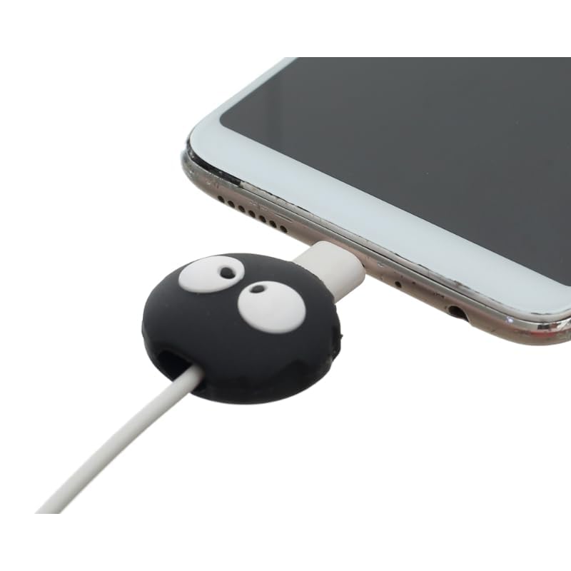 واقي شاحن وواقي كابل من جي-باور، من السيليكون الصلب مصمم على شكل شخصية كرتونية - أسود وأبيض، مجموعة من قطعتين