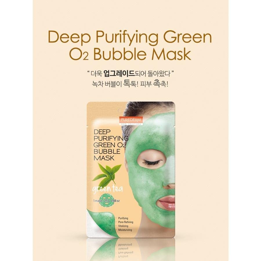 ماسك فقاعات لتنظيف الوجه بخلاصة الشاي الاخضر من بيورديرم - 1 ماسك، لنوع البشرة كل الأنواعة، شريحة