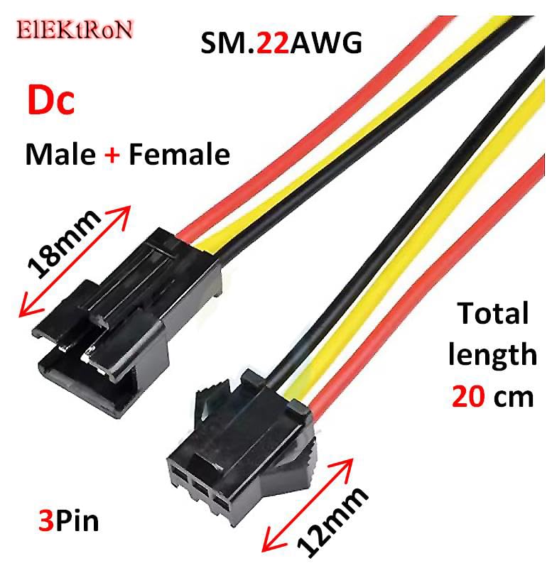 - قطعتان ذكر وقطعتين انثي من كابل الطاقة - موصل مقبس المنفذ دبوس إصلاح JST SM 3P قابس ذكر + أنثى 3 دبابيس LED شرائط مصباح سريع التشغيل طول كابل 20 سم سلك SM.22AWG موصلات محول 22AWG