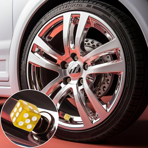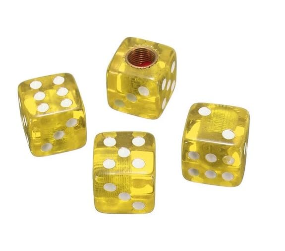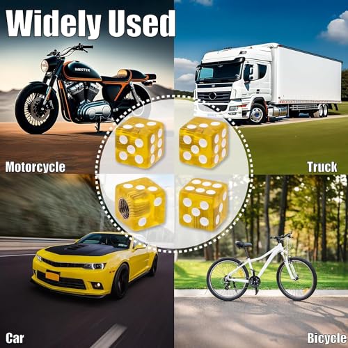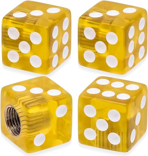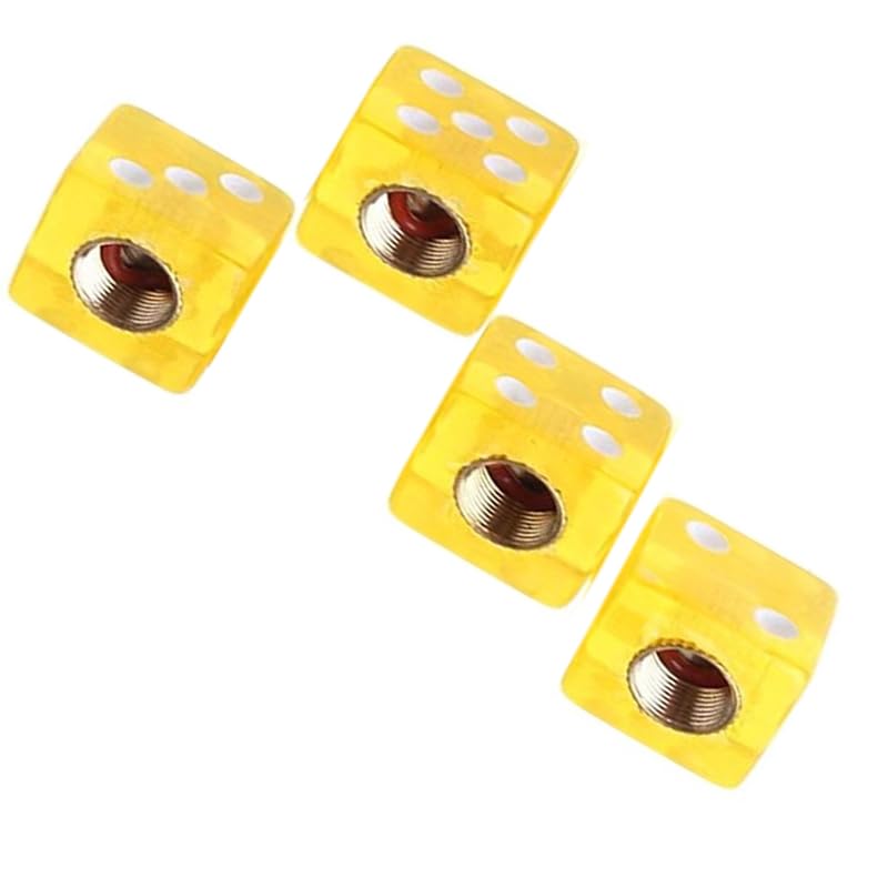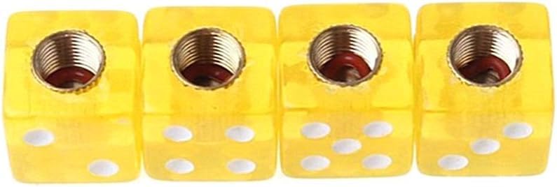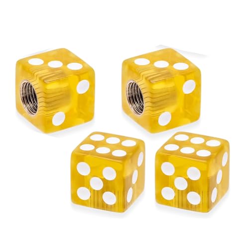 طقم غطاء بلف صمام اطارات السيارات على شكل نرد للسيارات والدراجات النارية والشاحنات والدراجات، غطاء عالمي للحماية من الغبار والاتربة - عدد 4 قطع لون اصفر - من كابر تريد
