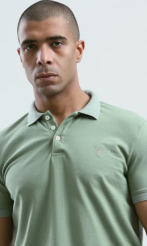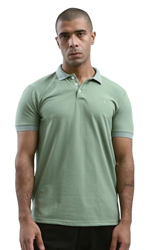 ريفين قميص بولو عصري بياقة كلاسيكية للرجال بلون اخضر فاتح سادة