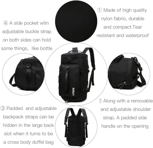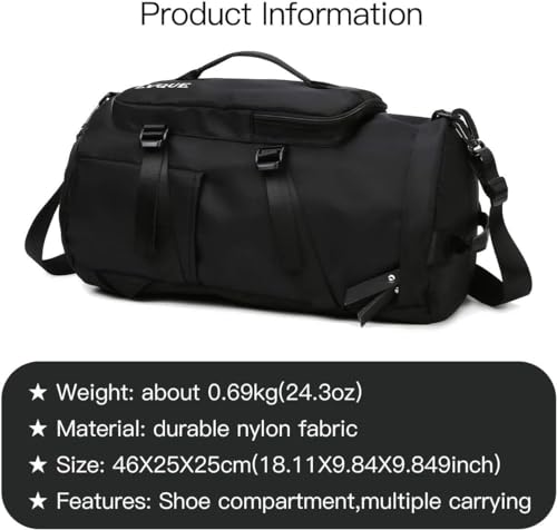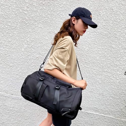 شنطة دفل رياضية بسعة كبيرة ومقاومة للماء وخفيفة الوزن مناسبة لصالة الألعاب الرياضية والسباحة واليوجا والسفر للرجال والنساء لون أسود 2 البوليستر