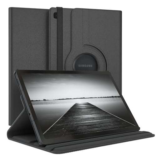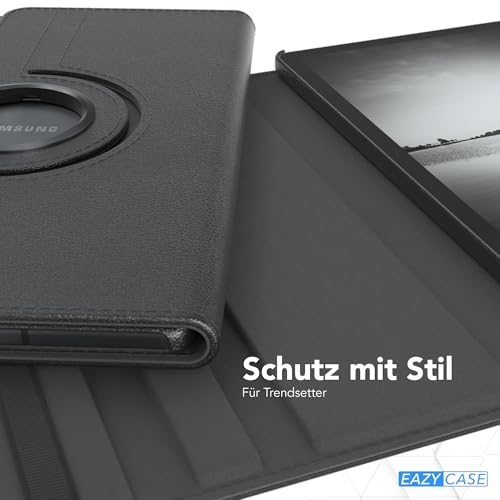 جراب حماية تابلت قابل للدوران 360° مع وظيفة الحامل من الجلد الصناعي لجهاز سامسونج جالكسي تاب S6 لايت 10.4 بوصة من ايزي كيس، لون أسود