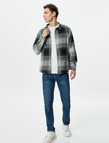 قميص كاروهات بأزرار وياقة كلاسيكية للرجال من كوتون، تصميم عصري، (عبوة من 1)