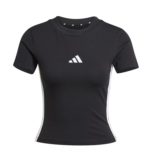 تيشرت اسنشيالز بقصة ضيقة سليم فت و3 خطوط للزينة للنساء من اديداس