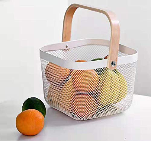 - سلة تخزين شبكية معدنية مزودة بمقبض من الخيزران، تُعد وسيلة رائعة لتنظيم أو تزيين منزلك أو مكتبك أو شقتك أو الغرف أو أماكن المعيشة الأخرى. سلة سلكية مثالية للاستخدام كسلة فاكهة أو سلة زهور، ومثالية لتخزين الفاكهة والخضروات خارج الثلاجة. كما أنها وحدة تخزين إضافية لتلبية احتياجاتك للاستخدام المنزلي.