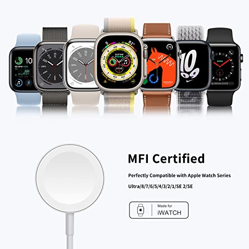 كيبل شاحن ساعة ابل 2023 مطور من ويريوي، [معتمد من ابل] شاحن ساعة مغناطيسي سريع لاسلكي متوافق مع ساعة ابل سلسلة الترا/8/7/6/5/4/3/2/SE/SE2