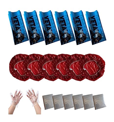 مجموعة تلوين الشعر - فيتا ايجيبت - 6 مجموعات (مريلة صبغة شعر للاستعمال مرة واحدة (ربطة)، قبعة استحمام، زوج من القفازات البلاستيكية) ملونة