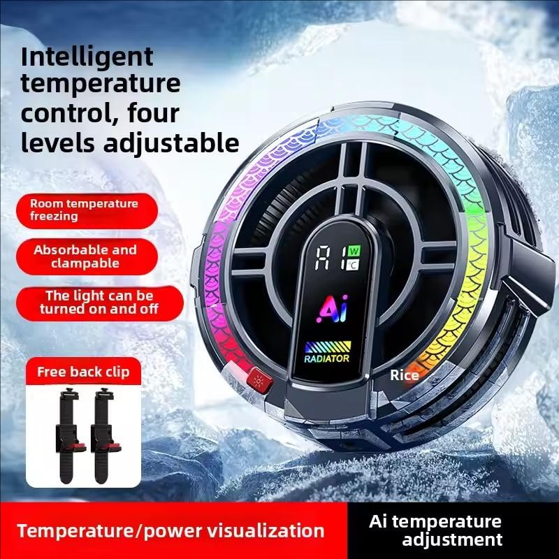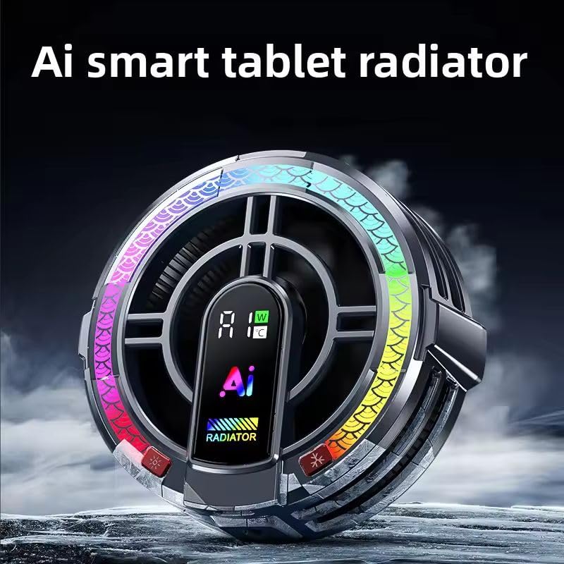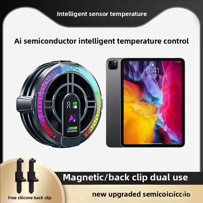 مبرد تابلت مغناطيسي من جي كيو، ردياتير عالمي للهاتف المحمول بمقبض قابل للإزالة، تحكم ذكي في درجة الحرارة مدعوم بالذكاء الاصطناعي، مروحة تبريد ار جي بي محمولة