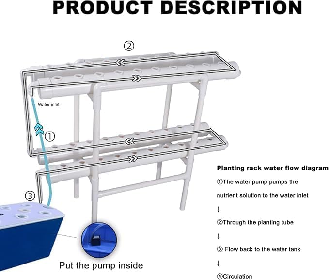 نظام زراعة مائية، 40 موقعًا للنباتات، تصميم من طبقتين، 4 أنابيب، مجموعة أدوات زراعة مائية للحديقة