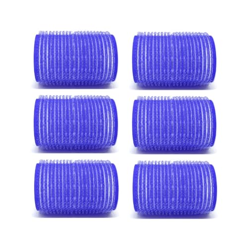 بكرات شعر كبيرة ذاتية الإمساك من 6 قطع - 40 ملم لتجعيد الشعر وتجعيده، لون أزرق