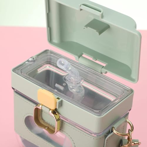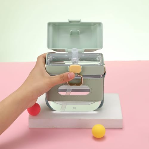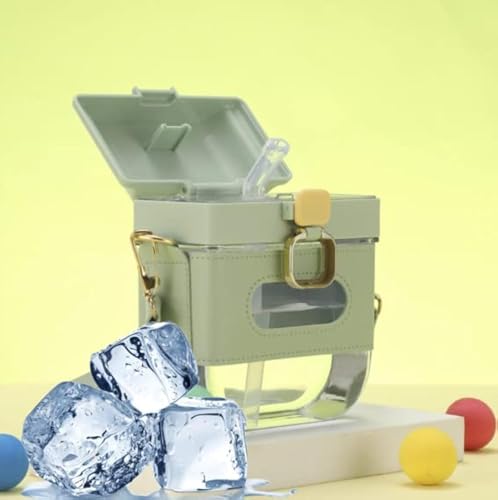 زجاجة كاواي مربعة مع شفاطة مصممة كزجاجة رياضية صغيرة عملية ومضادة للتسرب على شكل شعار انستجرام الشهير خالية من مادة بيسفينول أ للمكتب والمشي لمسافات طويلة للبنات من ليجن، لون أخضر، سيليكون