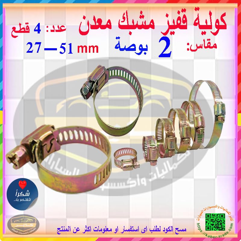 كولية قفيز مشبك خرطوم، لأنابيب المياه والسيارات متعدد الاستخدامات ( مقاس 2 بوصة - 27-51 ملم - عدد 4 قطع ) من كابرمصر 2020