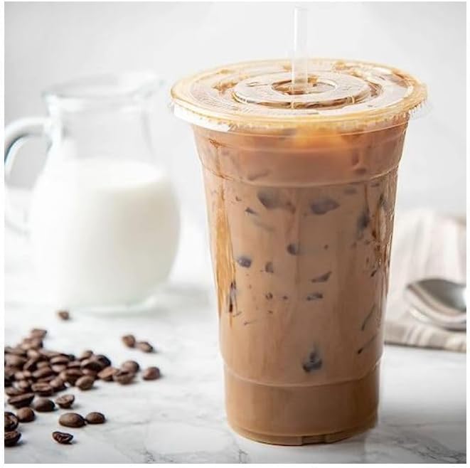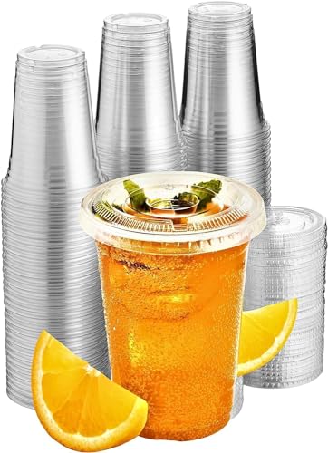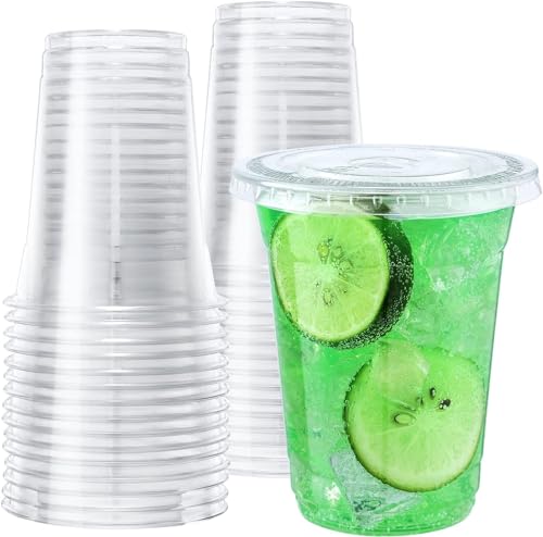 أكواب بلاستيكية شفافة للاستعمال مرة واحدة مع أغطية، 473 مل (50 قطعة)