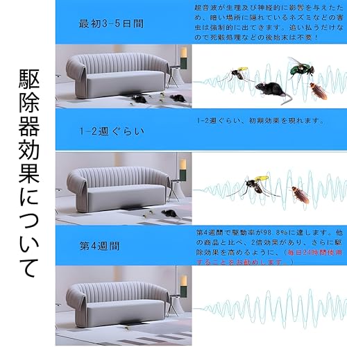 - **محمول وموفر للطاقة**: صغير الحجم وسهل الاستخدام، ما عليك سوى توصيله بأي منفذ واتركه يعمل بسحره! لا حاجة للبطاريات أو إعادة الشحن المستمر - فقط قم بإعداده ونسيانه! يضمن لك هذا التصميم الموفر للطاقة إمكانية الحفاظ على منزلك خاليًا من الآفات دون القلق بشأن فواتير الطاقة المرتفعة.