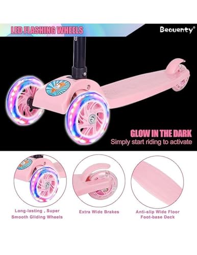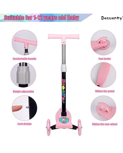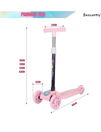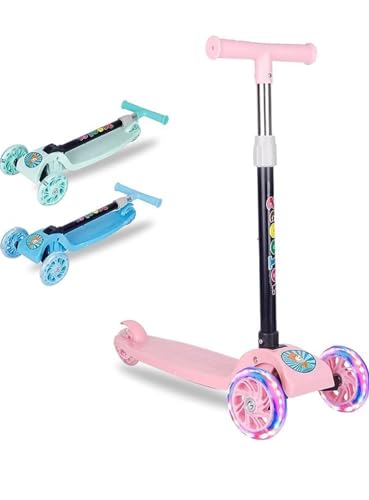 سكوتر دفع بثلاث عجلات للبنين والبنات بارتفاع قابل للتعديل وعجلات من البولي يوريثين للأطفال بعمر 3 إلى 12 سنة أزرق-وردي هيكل يحتوي على الألومنيوم