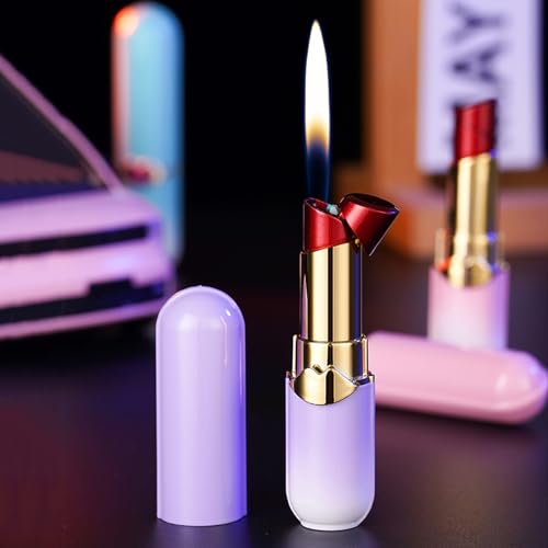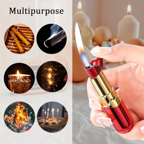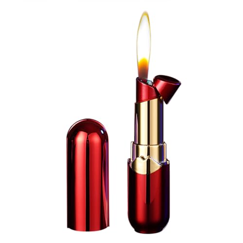 ولاعة بشعلة بتصميم أحمر شفاه لطيفة مع أداة تعديل اللهب، ولاعة بوتان بلهب ناعم قابلة لإعادة الملء للبنات والنساء وأعياد الميلاد (بدون غاز البوتان)، أحمر