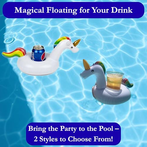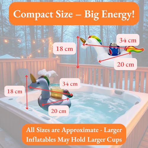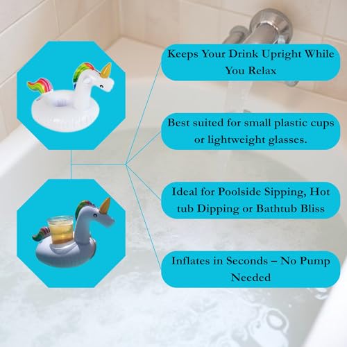 حامل مشروبات حوض استحمام ساخن على شكل يونيكورن قابل للنفخ مع أذنين من بارجين ويلز